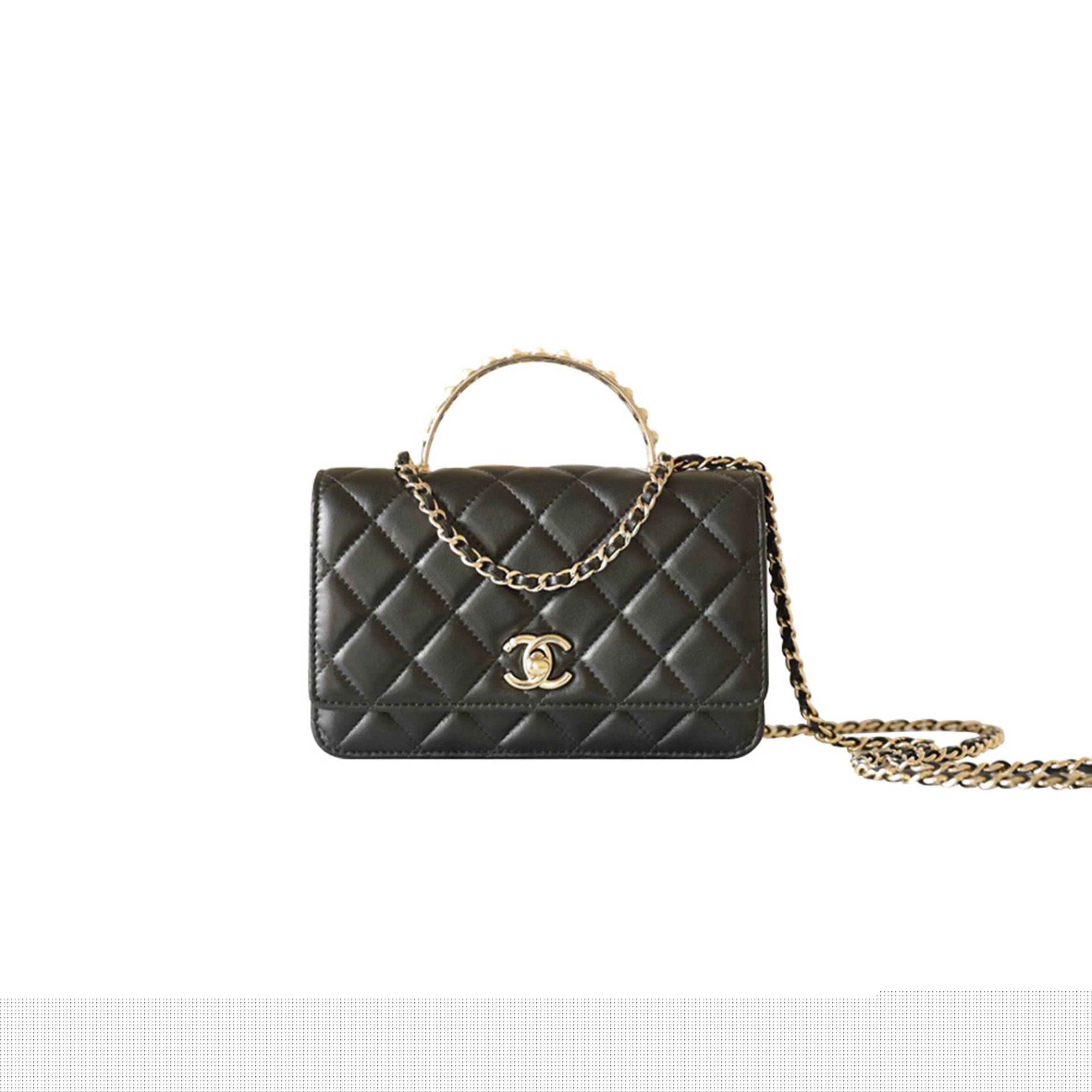 Ch*el clutch lambskin & gold-tone metalblack as5038 (25*19*3cm)