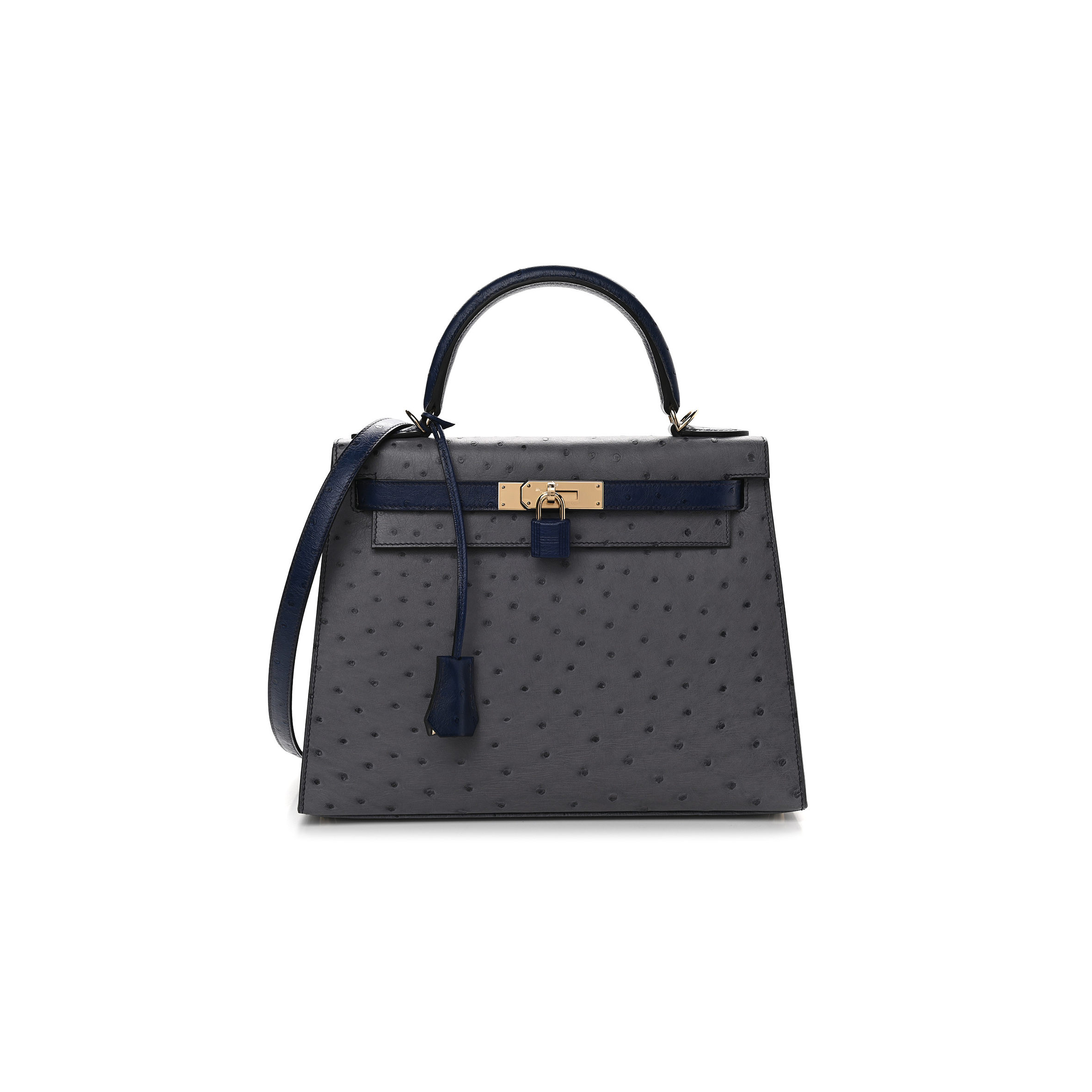 H**mes master ostrich horseshoe kelly sellier 28 gris agate bleu iris (28*22*10cm)