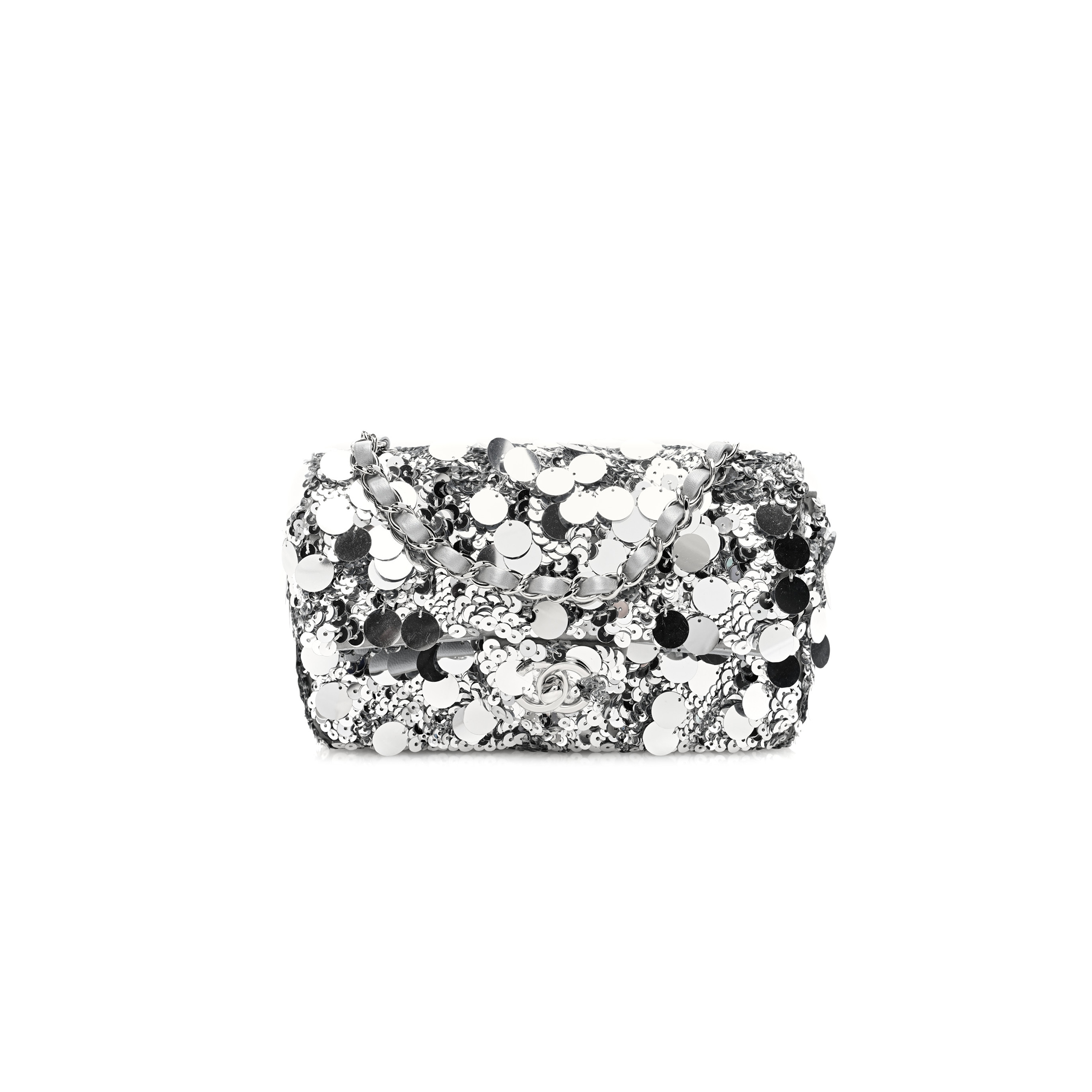 Ch*el mini classic flap bag pearl and sequins & gold metal white 295846 (20*12*6cm)