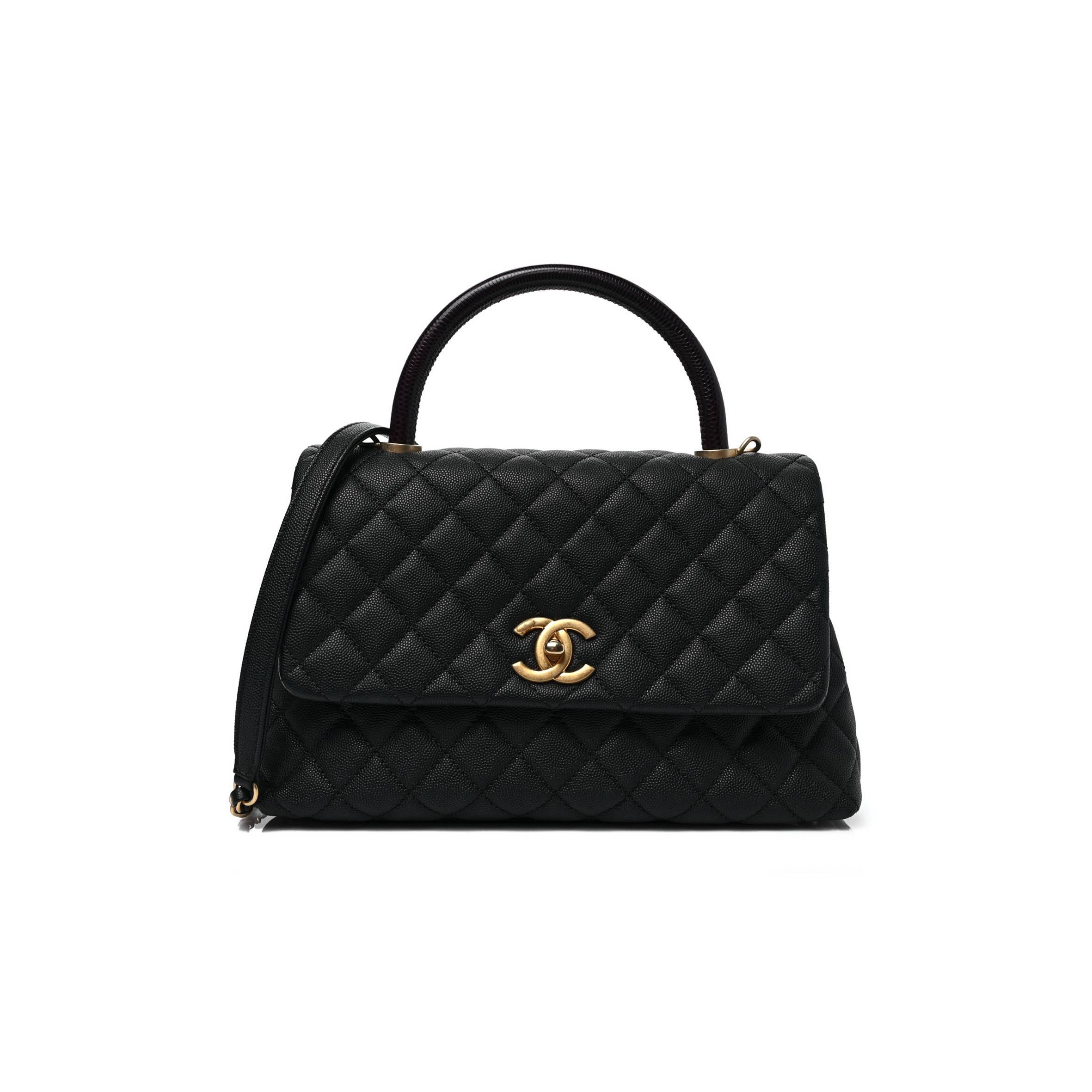 Ch*el caviar lizard embossed quilted small coco handle flap black gold hardware (29*18*11cm)