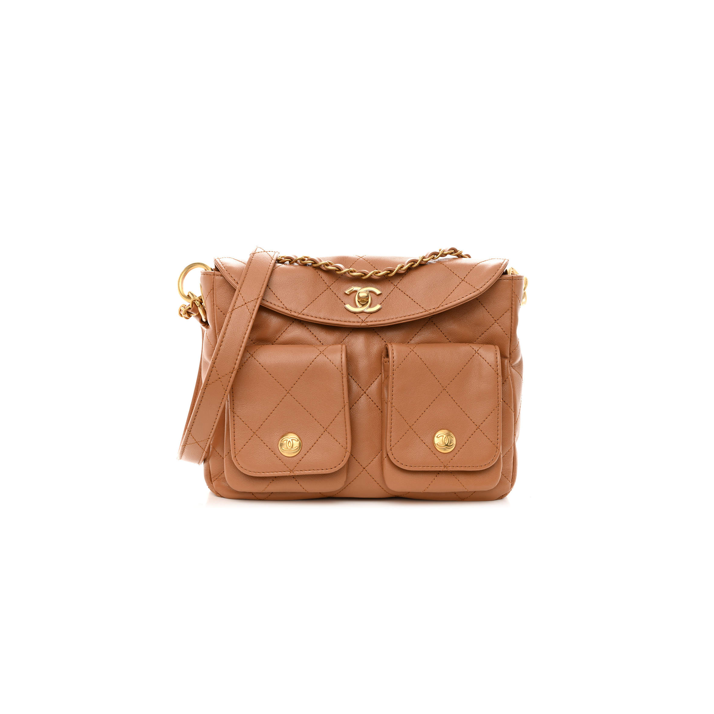 ch*el shiny calfskin quilted S*pple twins smal hobo bag brown (24.5*19*5cm)