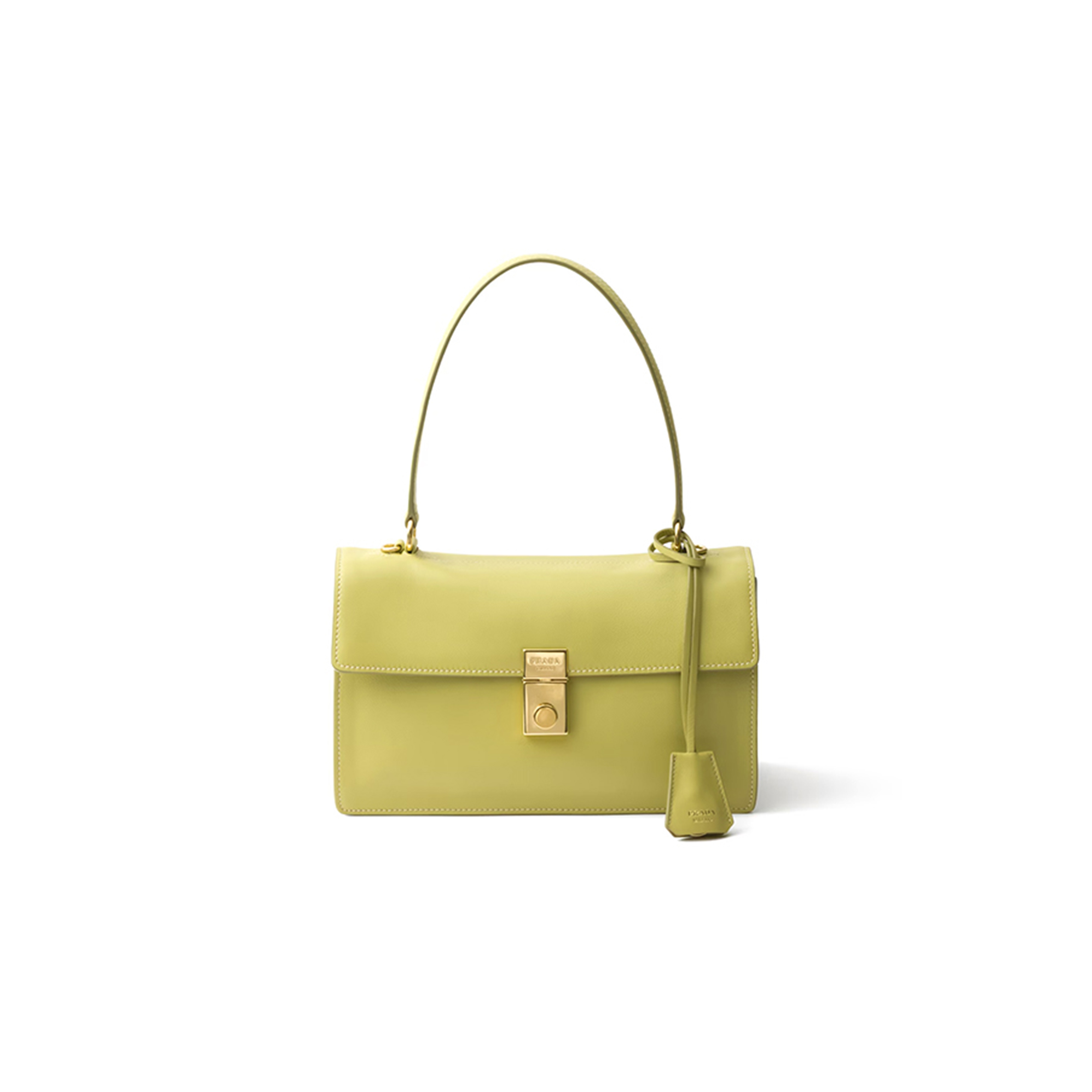 Pra*a fold-over top leather shoulder bag in cream 1bd343 (28.5*14*7cm)